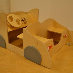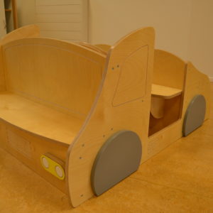 – Voertuig is opgebouwd uit duurzaam multiplex en is afgewerkt met slijtvaste lak
