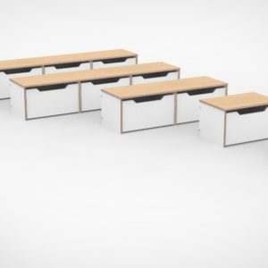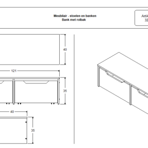 – Bankje met rolbakken kan gecombineerd worden met instructietafels