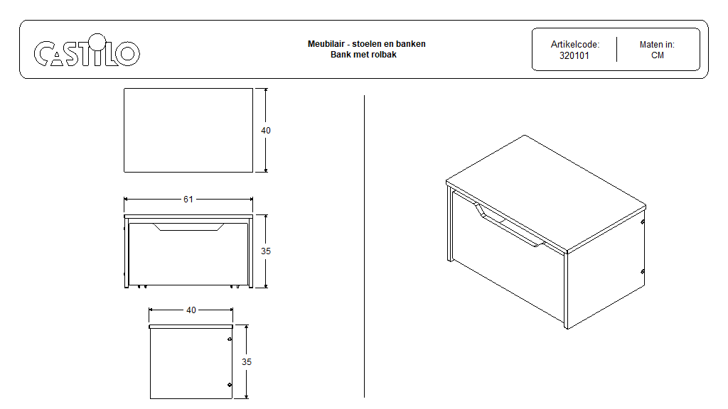 – Bankje met rolbakken wordt standaard met witte HPL zitting geleverd