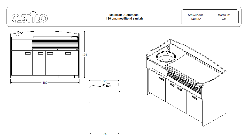 Commode 180cm meeliftend sanitair deuren specificaties: