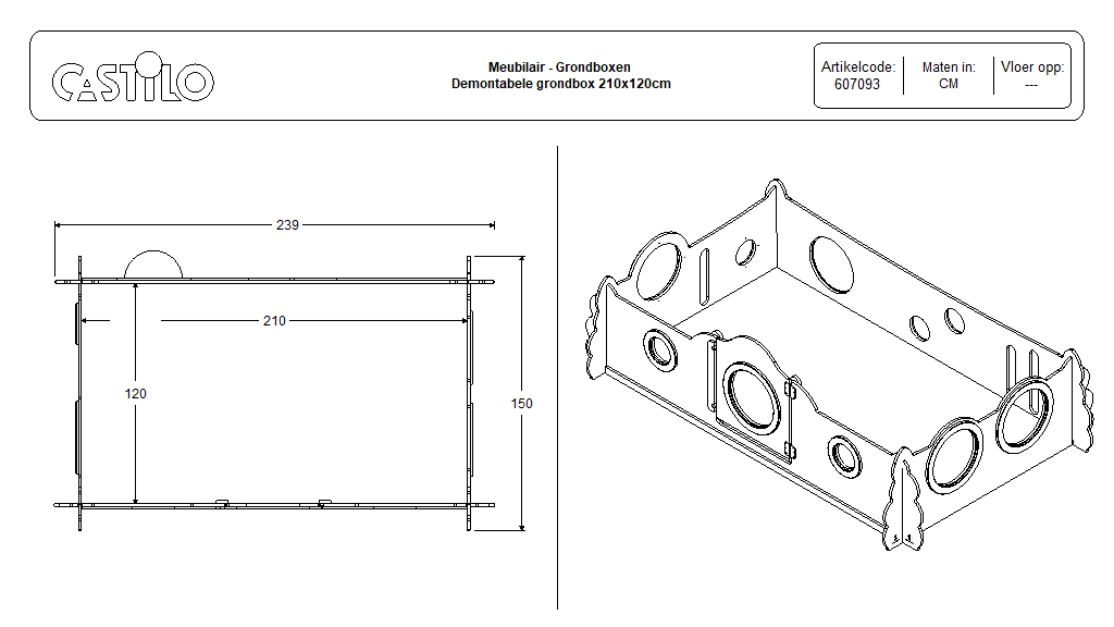 Castilo Meubelmakers / Alle producten / Meubilair / Grondboxen / Demontabele grondbox / Opstellingen / Demontabele grondbox 210×120 cm