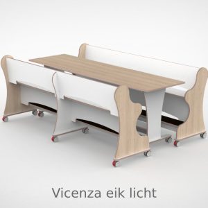 – Banken hebben een breedte van 218,7cm en een zithoogte van 55 cm. – Tafel is L x B x H = 218,7 x 60 x 75 cm. – Banken en tafel zijn opgebouwd uit 18 mm berken multiplex met standaard wit HPL toplaag, deze is zeer slijt en krasvast. – Banken en tafel worden standaard geleverd met wit HPL zitting/tafelblad. – Per bank zijn er 6 zwenkwielen gemonteerd met rem. – Onder de tafel zijn standaard zijn 4 zwenkwielen gemonteerd met rem. – Bij levering tot 1.000,00 incl. btw rekenen wij 55,00 euro bezorgkosten, voor levering op verdieping vragen wij u contact met ons op te nemen. – Voor levering buiten Nederland en de Waddeneilanden, neem dan contact op voor de mogelijkheden.