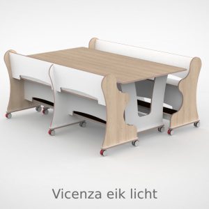 – Banken hebben een breedte van 188,7cm en een zithoogte van 55 cm. – Tafel is L x B x H = 188,7 x 100 x 75 cm. – Banken en tafel zijn opgebouwd uit 18 mm berken multiplex met standaard wit HPL toplaag, deze is zeer slijt en krasvast. – Banken en tafel worden standaard geleverd met wit HPL zitting/tafelblad. – Per bank zijn er 6 zwenkwielen gemonteerd met rem. – Onder de tafel zijn standaard zijn 4 zwenkwielen gemonteerd met rem. – Bij levering tot 1.000,00 incl. btw rekenen wij 55,00 euro bezorgkosten, voor levering op verdieping vragen wij u contact met ons op te nemen. – Voor levering buiten Nederland en de Waddeneilanden, neem dan contact op voor de mogelijkheden.