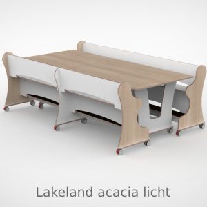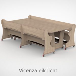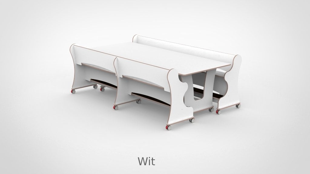 – Banken hebben een breedte van 248,7 cm en een zithoogte van 55 cm. – Tafel is L x B x H = 243 x 100 x 75 cm. – Banken en tafel zijn opgebouwd uit 18 mm berken multiplex met standaard wit HPL toplaag, deze is zeer slijt en krasvast. – Banken en tafel worden standaard geleverd met wit HPL zitting/tafelblad. – Per bank zijn er 6 zwenkwielen gemonteerd met rem. – Onder de tafel zijn standaard zijn 4 zwenkwielen gemonteerd met rem. – Bij levering tot 1.000,00 incl. btw rekenen wij 55,00 euro bezorgkosten, voor levering op verdieping vragen wij u contact met ons op te nemen. – Voor levering buiten Nederland en de Waddeneilanden, neem dan contact op voor de mogelijkheden.