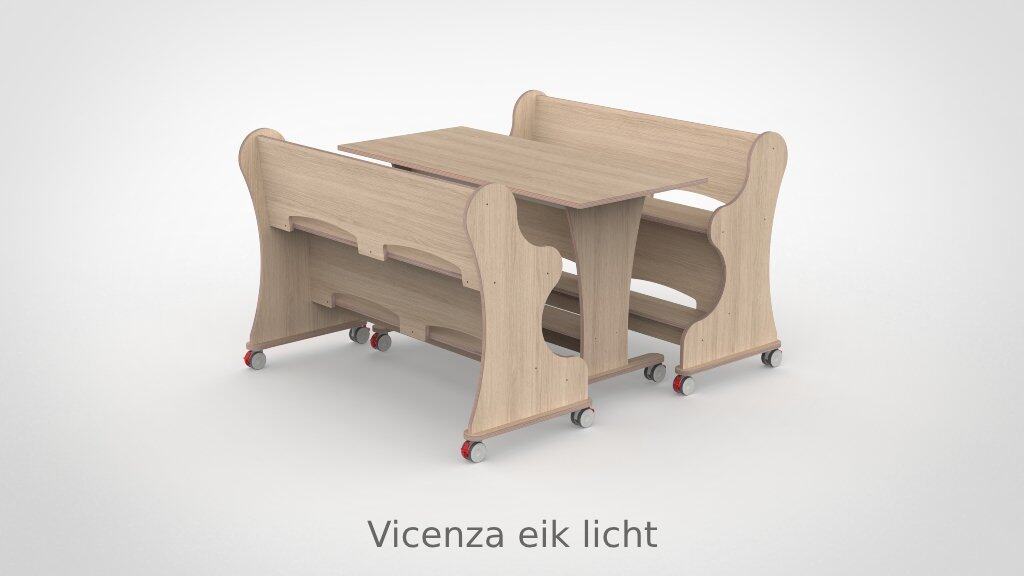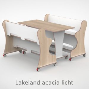 – Banken hebben een breedte van 128,7cm en een zithoogte van 55 cm. – Tafel is L x B x H = 128,7 x 60 x 75 cm. – Banken en tafel zijn opgebouwd uit 18 mm berken multiplex met standaard wit HPL toplaag, deze is zeer slijt en krasvast. – Banken en tafel worden standaard geleverd met wit HPL zitting/tafelblad. – Per bank zijn er 4 zwenkwielen gemonteerd met rem. – Onder de tafel zijn standaard zijn 4 zwenkwielen gemonteerd met rem. – Bij levering tot 1.000,00 incl. btw rekenen wij 55,00 euro bezorgkosten, voor levering op verdieping vragen wij u contact met ons op te nemen. – Voor levering buiten Nederland en de Waddeneilanden, neem dan contact op voor de mogelijkheden.