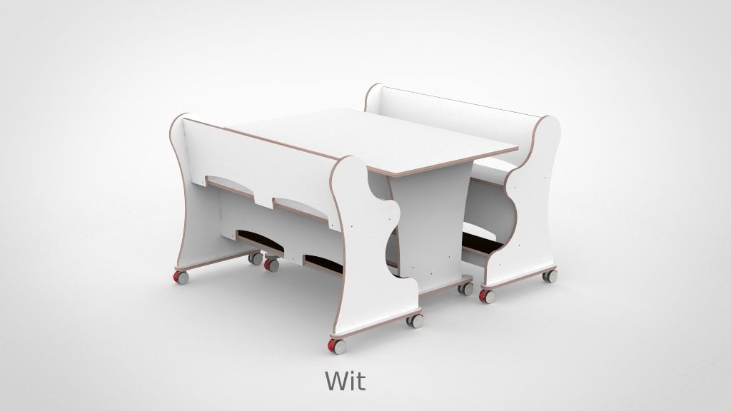 – Banken hebben een breedte van 128,7cm en een zithoogte van 55 cm. – Tafel is L x B x H = 128,7 x 80 x 75 cm. – Banken en tafel zijn opgebouwd uit 18 mm berken multiplex met standaard wit HPL toplaag, deze is zeer slijt en krasvast. – Banken en tafel worden standaard geleverd met wit HPL zitting/tafelblad. – Per bank zijn er 4 zwenkwielen gemonteerd met rem. – Onder de tafel zijn standaard zijn 4 zwenkwielen gemonteerd met rem. – Bij levering tot 1.000,00 incl. btw rekenen wij 55,00 euro bezorgkosten, voor levering op verdieping vragen wij u contact met ons op te nemen. – Voor levering buiten Nederland en de Waddeneilanden, neem dan contact op voor de mogelijkheden.