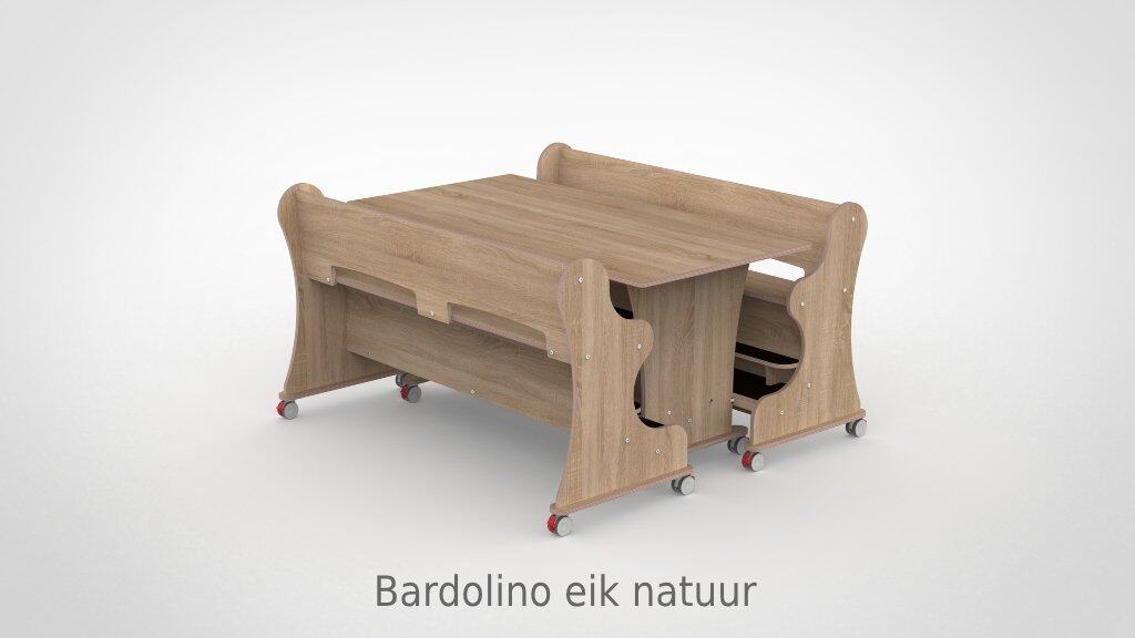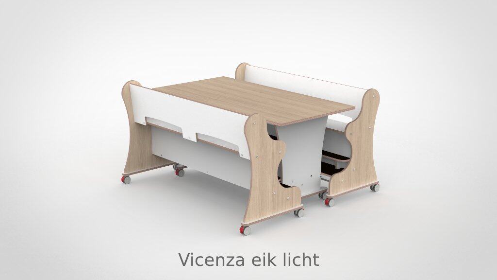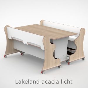 – Banken hebben een breedte van 158,7cm en een zithoogte van 55 cm. Vanaf de zitting tot hoge voetenplank is de afmeting 22cm de lage voetenplank vanaf zitting is 33cm. – Tafel is L x B x H = 158,7 x 80 x 75 cm. – Banken en tafel zijn uitgevoerd met standaard wit HPL toplaag, deze is zeer slijt en krasvast. Voor houtdecor zie keuzemenu. – Per bank zijn er 4 zwenkwielen gemonteerd met rem. – Onder de tafel zijn standaard zijn 4 zwenkwielen gemonteerd met rem. – Bij levering tot 1.000,00 incl. btw rekenen wij 55,00 euro bezorgkosten, voor levering op verdieping vragen wij u contact met ons op te nemen. – Voor levering buiten Nederland en de Waddeneilanden, neem dan contact op voor de mogelijkheden.