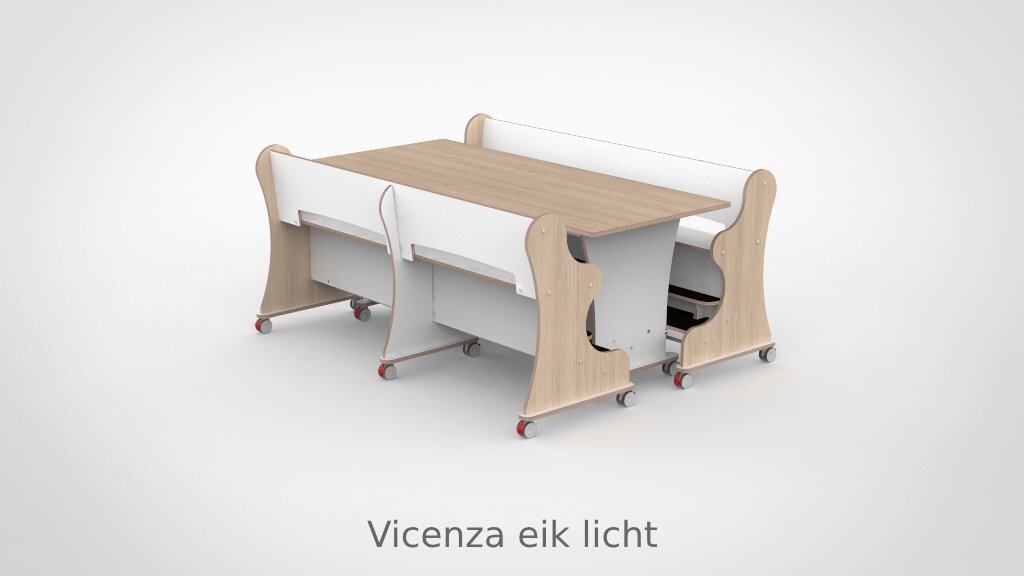 – Banken hebben een breedte van 188,7cm en een zithoogte van 55 cm. Vanaf de zitting tot hoge voetenplank is 22cm de lage voetenplank vanaf zitting is 33cm. – Tafel is L x B x H = 188,7 x 80 x 75 cm. – Banken en tafel zijn met standaard wit HPL toplaag, deze is zeer slijt en krasvast. – Banken en tafel worden standaard geleverd met wit HPL zitting/tafelblad. – Per bank zijn er 6 zwenkwielen gemonteerd met rem. – Onder de tafel zijn standaard zijn 4 zwenkwielen gemonteerd met rem. – Bij levering tot 1.000,00 incl. btw rekenen wij 55,00 euro bezorgkosten, voor levering op verdieping vragen wij u contact met ons op te nemen. – Voor levering buiten Nederland en de Waddeneilanden, neem dan contact op voor de mogelijkheden.