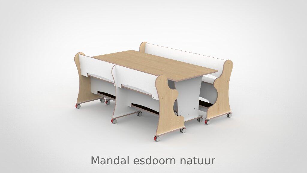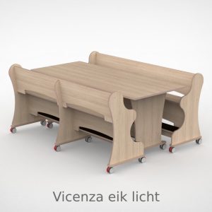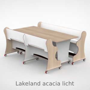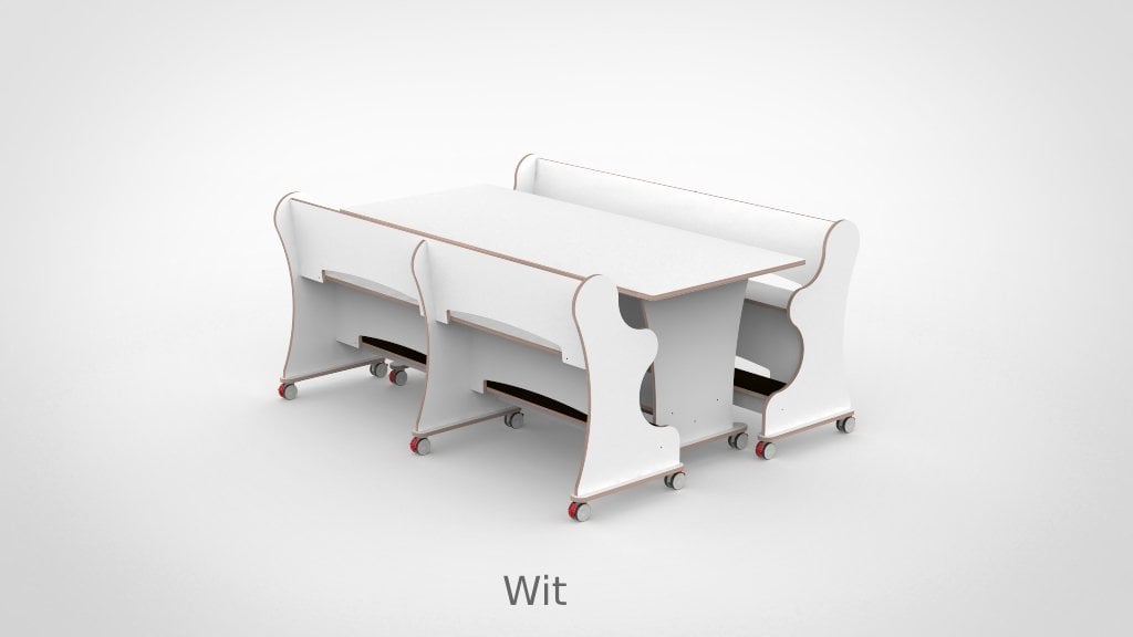 – Banken hebben een breedte van 188,7cm en een zithoogte van 55 cm. – Tafel is L x B x H = 188,7 x 80 x 75 cm. – Banken en tafel zijn opgebouwd uit 18 mm berken multiplex met standaard wit HPL toplaag, deze is zeer slijt en krasvast. – Banken en tafel worden standaard geleverd met wit HPL zitting/tafelblad. – Per bank zijn er 6 zwenkwielen gemonteerd met rem. – Onder de tafel zijn standaard zijn 4 zwenkwielen gemonteerd met rem. – Bij levering tot 1.000,00 incl. btw rekenen wij 55,00 euro bezorgkosten, voor levering op verdieping vragen wij u contact met ons op te nemen. – Voor levering buiten Nederland en de Waddeneilanden, neem dan contact op voor de mogelijkheden.