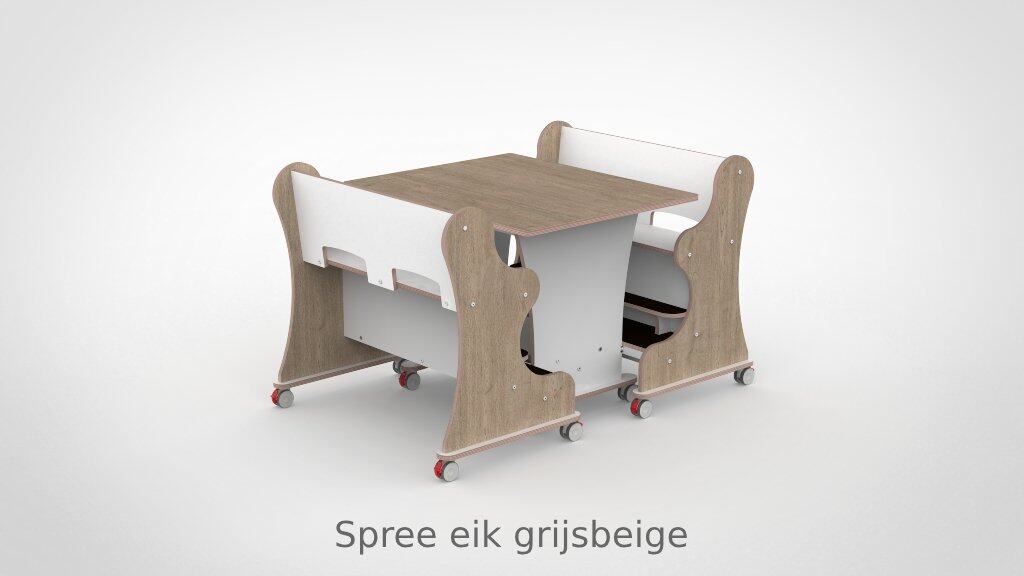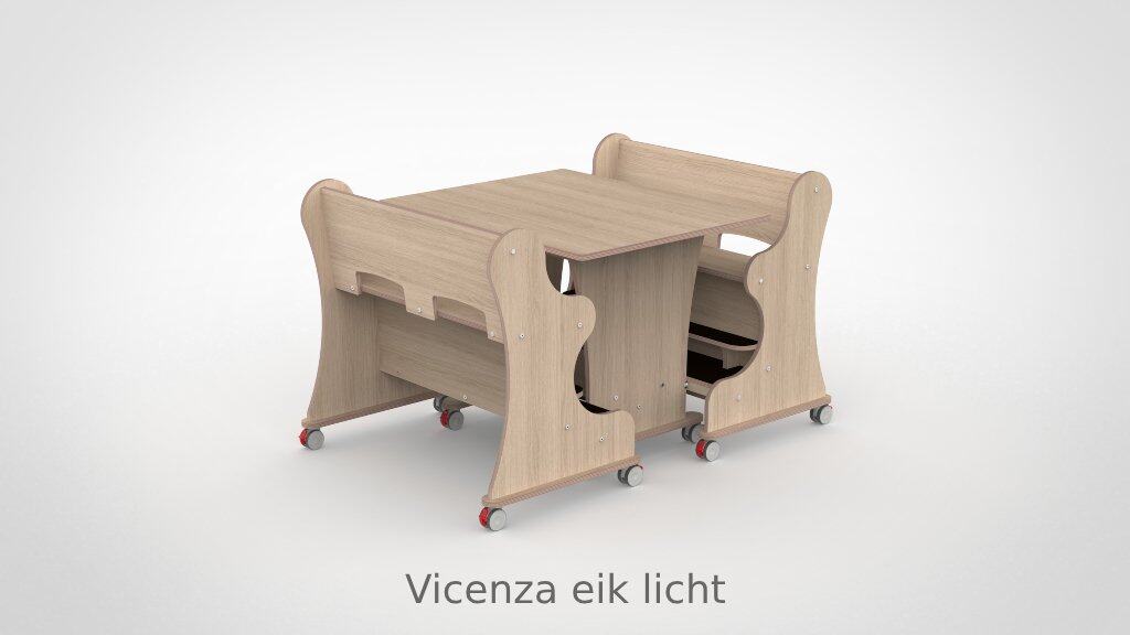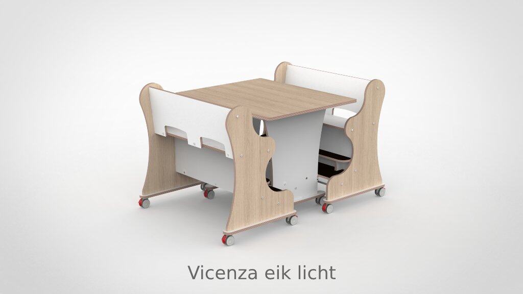 – Banken hebben een breedte van 98,7cm en een zithoogte van 55 cm. Vanaf de zitting tot hoge voetenplank is de afmeting 22cm de lage voetenplank vanaf zitting is 33cm. – Tafel is L x B x H = 98,7 x 80 x 75 cm. – Banken en tafel zijn uitgevoerd met standaard wit HPL toplaag, deze is zeer slijt en krasvast. Voor houtdecor zie keuzemenu. – Per bank zijn er 4 zwenkwielen gemonteerd met rem. – Onder de tafel zijn standaard zijn 4 zwenkwielen gemonteerd met rem. – Bij levering tot 1.000,00 incl. btw rekenen wij 55,00 euro bezorgkosten, voor levering op verdieping vragen wij u contact met ons op te nemen. – Voor levering buiten Nederland en de Waddeneilanden, neem dan contact op voor de mogelijkheden.
