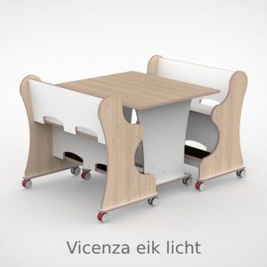 – Banken hebben een breedte van 98,7cm en een zithoogte van 55 cm. – Tafel is L x B x H = 98,7 x 80 x 75 cm. – Banken en tafel zijn opgebouwd uit 18 mm berken multiplex met standaard wit HPL toplaag, deze is zeer slijt en krasvast. – Banken en tafel worden standaard geleverd met wit HPL zitting/tafelblad. – Per bank zijn er 4 zwenkwielen gemonteerd met rem. – Onder de tafel zijn standaard zijn 4 zwenkwielen gemonteerd met rem. – Bij levering tot 1.000,00 incl. btw rekenen wij 55,00 euro bezorgkosten, voor levering op verdieping vragen wij u contact met ons op te nemen. – Voor levering buiten Nederland en de Waddeneilanden, neem dan contact op voor de mogelijkheden.