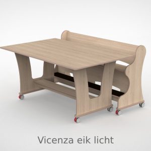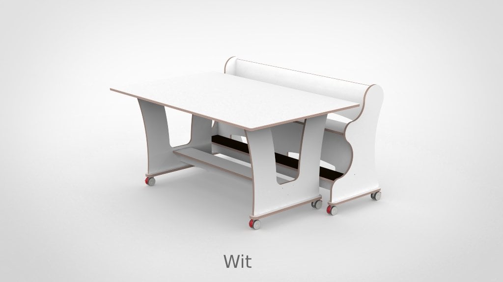 – Bank heeft een breedte van 158,7 cm en een zithoogte van 55 cm. – Tafel is L x B x H = 158,7 x 100 x 75 cm. – Bank en tafel zijn opgebouwd uit 18 mm berken multiplex met standaard wit HPL toplaag, deze is zeer slijt en krasvast. – Standaard geleverd met wit HPL zitting/tafelblad – Onder de bank zijn er 4 zwenkwielen met rem gemonteerd. – Onder de tafel zijn standaard zijn 4 zwenkwielen met rem gemonteerd. – Bij levering tot 1.000,00 incl. btw rekenen wij 55,00 euro bezorgkosten, voor levering op verdieping vragen wij u contact met ons op te nemen. – Voor levering buiten Nederland en de Waddeneilanden, neem dan contact op voor de mogelijkheden.