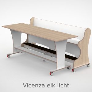 – De bank heeft een breedte van 188,7cm en een zithoogte van 55 cm. – Tafel is L x B x H = 188,7 x 60 x 75 cm. – Bank en tafel zijn met standaard wit HPL toplaag, deze is zeer slijt en krasvast. – Op de bank zijn er 6 zwenkwielen gemonteerd met rem. – Onder de tafel zijn standaard zijn 4 zwenkwielen gemonteerd met rem. – Bij levering tot 1.000,00 incl. btw rekenen wij 55,00 euro bezorgkosten, voor levering op verdieping vragen wij u contact met ons op te nemen. – Voor levering buiten Nederland en de Waddeneilanden, neem dan contact op voor de mogelijkheden.