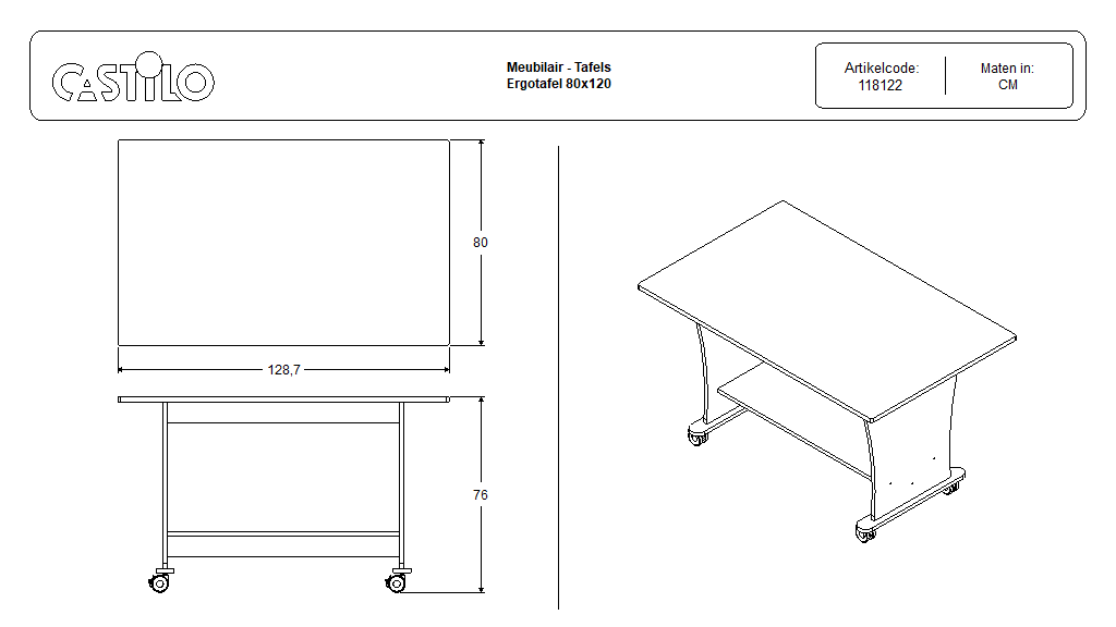 Castilo Meubelmakers / Alle producten / Meubilair / Ergo meubilair / Ergotafels / Ergotafels 80 breed / Ergotafel 80×120