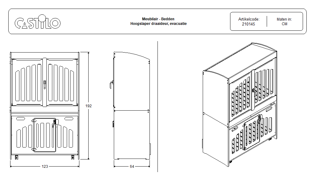 Castilo Meubelmakers / Alle producten / Meubilair / Bedden / Hoogslaper draai evacuatie / Hoogslaper draaideur evacuatie