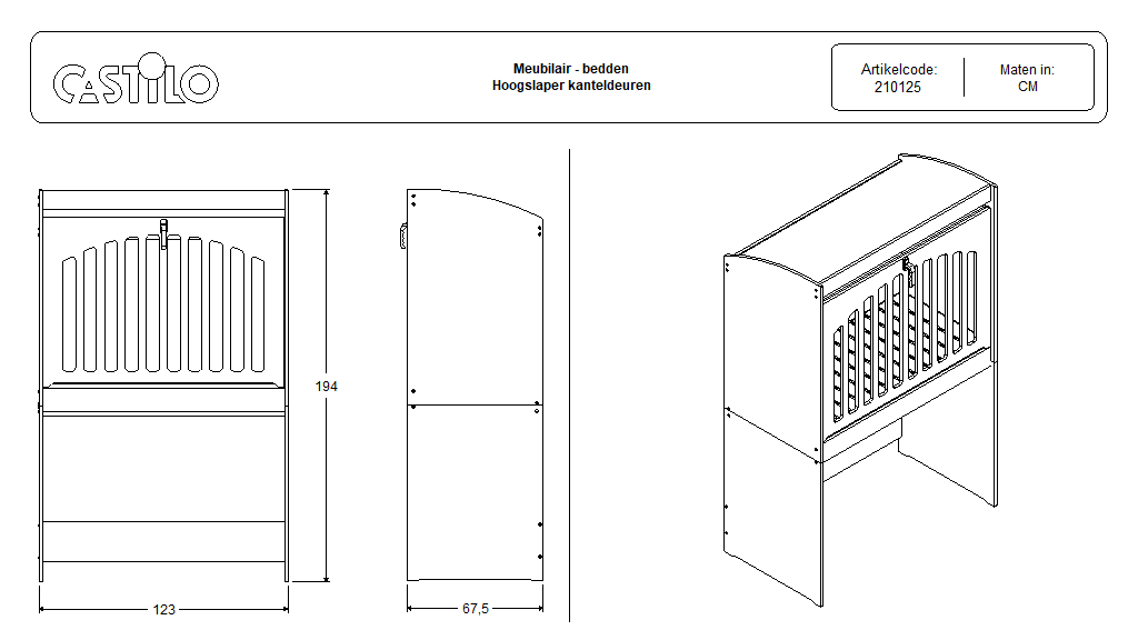 Castilo Meubelmakers / Alle producten / Meubilair / Bedden / Hoogslaper, kanteldeuren / Hoogslaper met kanteldeuren