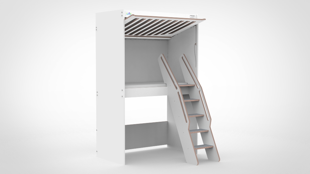 – Bed is opgebouwd uit 15 mm berken multiplex met standaard wit HPL toplaag, deze is zeer slijt en krasvast