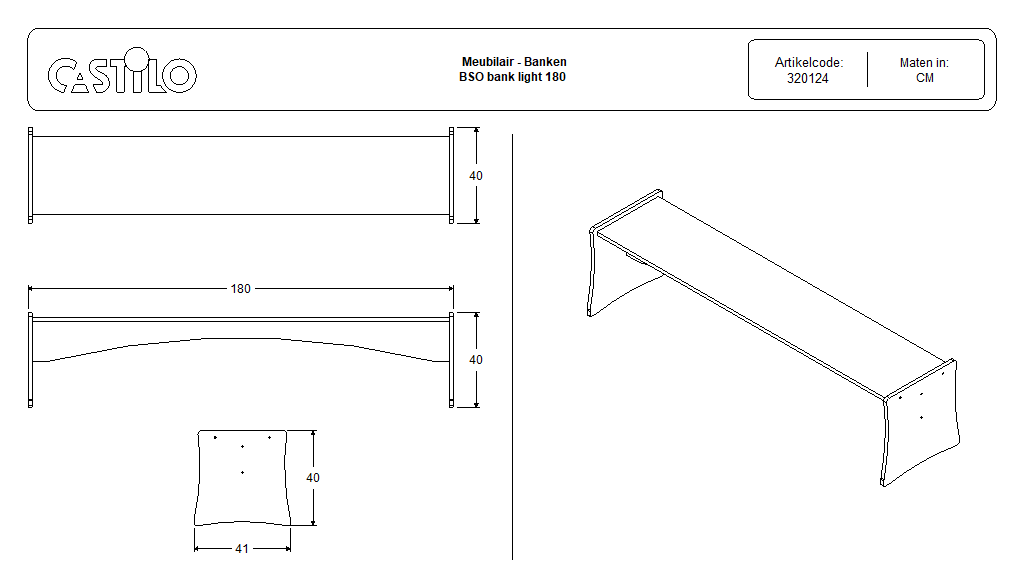 Castilo Meubelmakers / Alle producten / Meubilair / Stoelen en banken / Banken / BSO banken light / BSO bank light 180