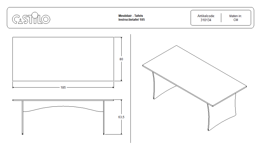 Castilo Meubelmakers / Alle producten / Meubilair / Tafels / Instructietafels / Instructietafel 185