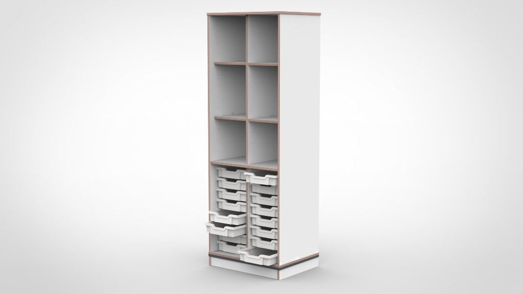 – Dit product is uitgevoerd met 16x Kleine F1 7,5cm Gratnell lades in de kleur Wit