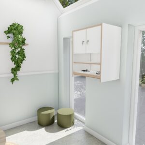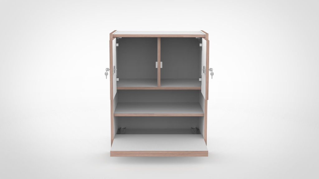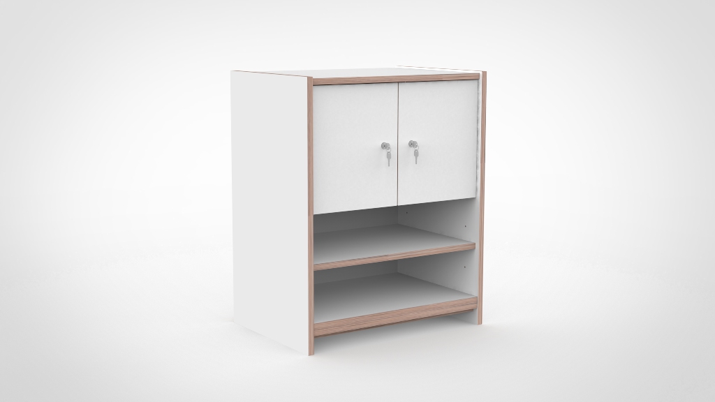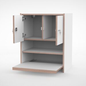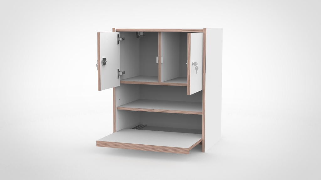 – Standaard wordt de kast in Wit HPL uitgevoerd