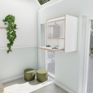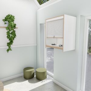 – Standaard wordt de kast in Wit HPL uitgevoerd