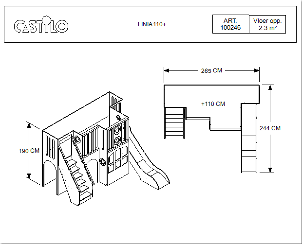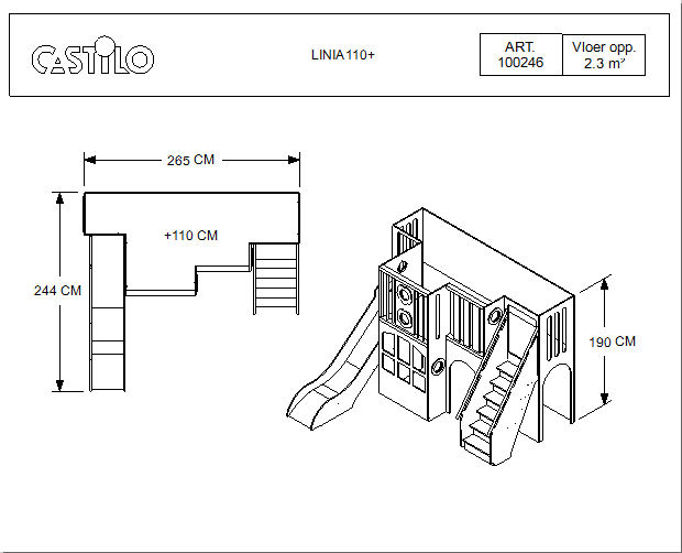 Castilo Meubelmakers / Alle producten / Speeltoestellen / Speelhuisjes 3 t/m 6 jaar / Linia / Linia 110 +