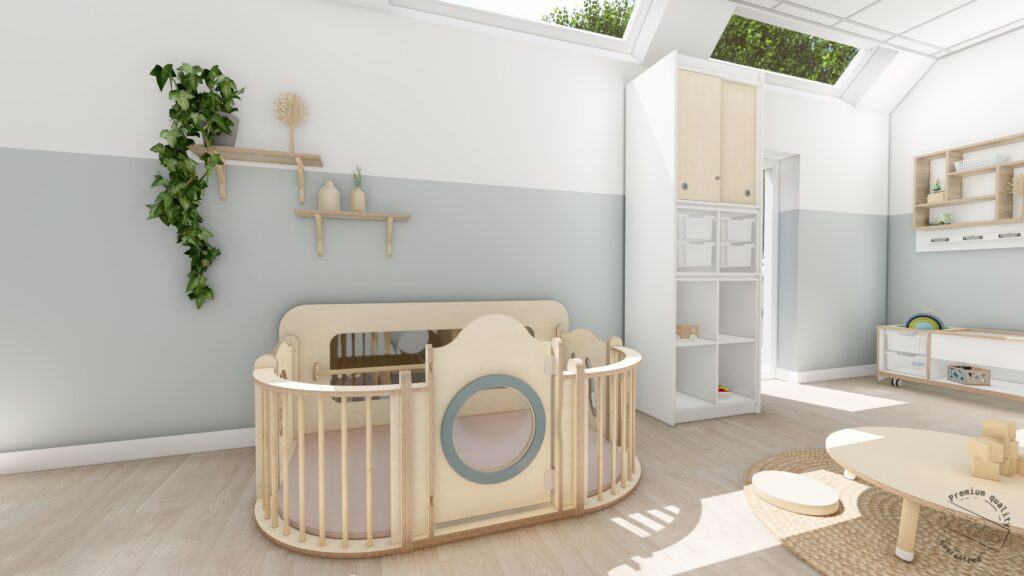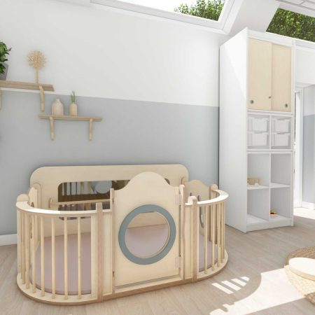 Castilo Meubelmakers / Alle producten / Meubilair / Grondboxen / Loopwanden / Opstellingen / Loopwand basic met wavebox in decor