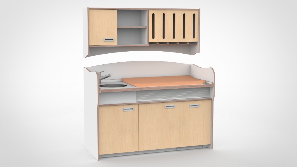 – Standaard wordt de luier dispenser uitgevoerd in 15 mm met aan beide kanten wit HPL.