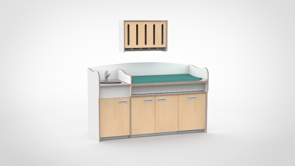 – Standaard wordt de luier dispenser uitgevoerd in 15 mm berkenmultiplex met aan beide kanten wit HPL.