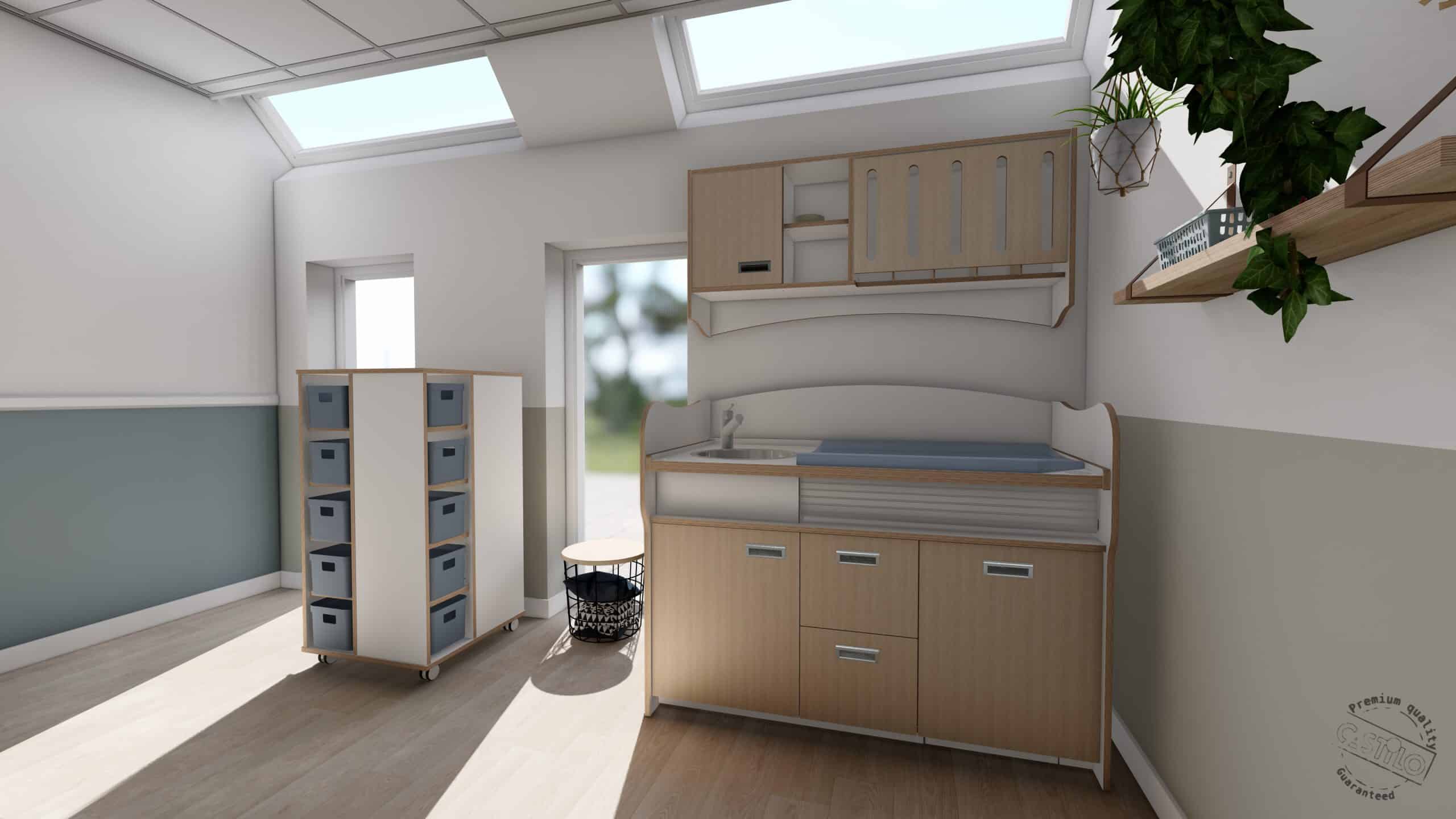 Deze mandjes carrouselkast van wit HPL heeft 5 vakken aan 4 kanten waar in totaal 20 mandjes van 13L in passen. De kast is inclusief mandjes en standaard met wielen uitgevoerd.