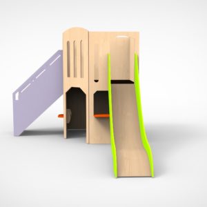 Als het speelhuis zo wordt geplaatst dat de glijbaan vlak langs de muur of een ander obstakel loopt kan dit gevaar opleveren, omdat tijdens de vaart een hand of arm tussen de muur en glijbaanzijde komt en beknelt raakt, de vaart naar beneden is een gedwongen beweging als je gaat dan ga je. Dit gevaar is op te lossen door gebruik te maken van een verhoogde glijbaanzijde. Met dit onderdeel wordt het mogelijk om het toestel bijna overal neer te zetten.