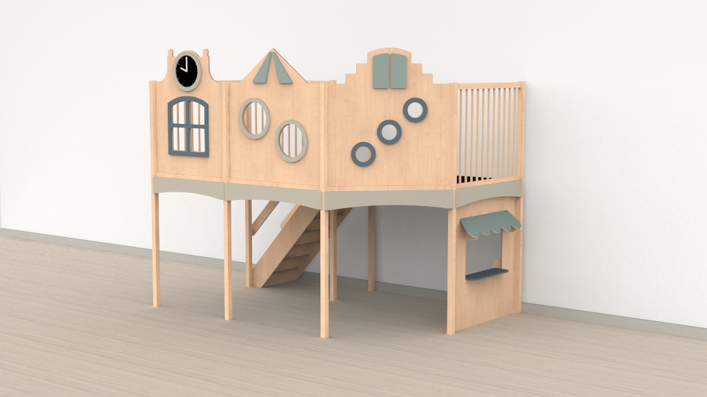 Castilo Meubelmakers / Alle producten / Speeltoestellen / Speelwerkverdiepingen / Oldschool speelwerkverdiepingen / Trap linksachter / Oldschool speelwerkverdieping trap linksachter 06