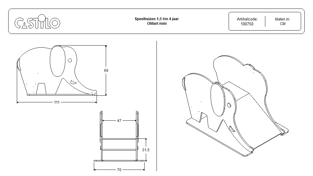 Castilo Meubelmakers / Alle producten / Speeltoestellen / Speelhuisjes 1,5 t/m 4 jaar / Olifant / Olifant mini
