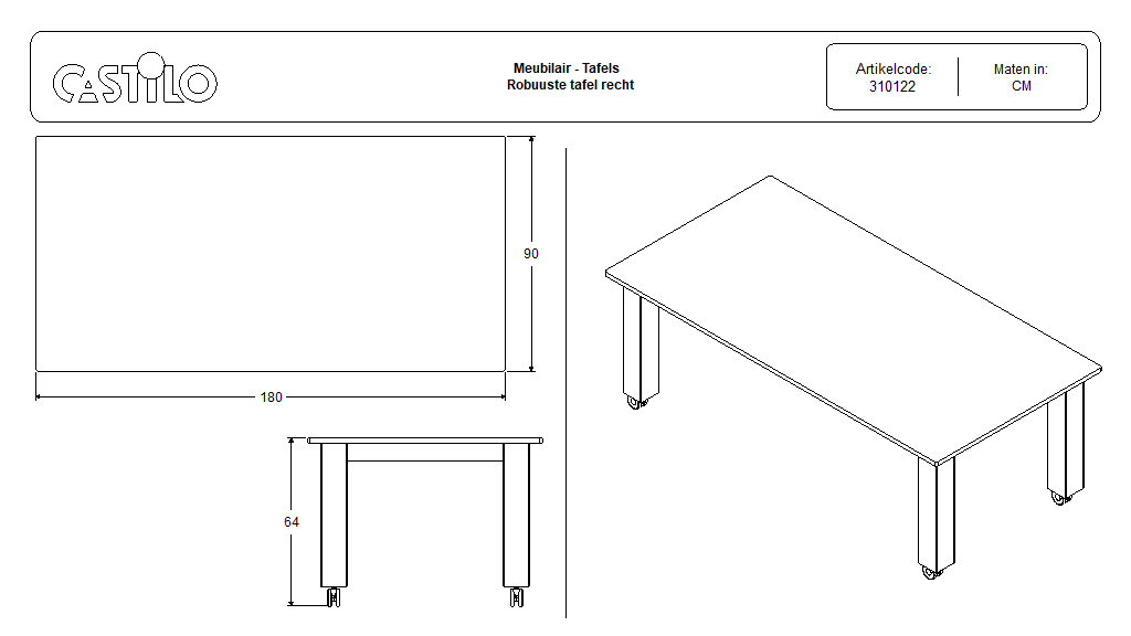 Castilo Meubelmakers / Alle producten / Meubilair / Tafels / Robuuste tafels / Robuuste tafel recht / Robuuste tafel recht 180