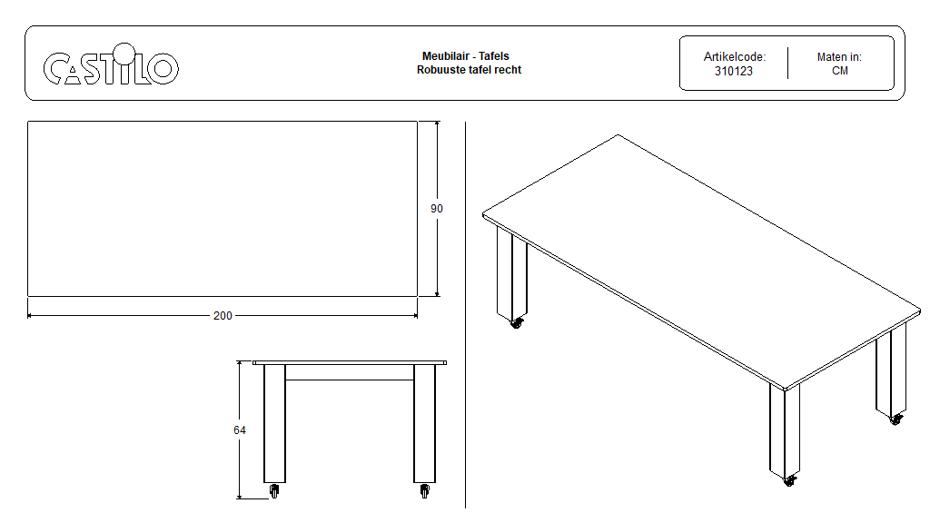 Castilo Meubelmakers / Alle producten / Meubilair / Tafels / Robuuste tafels / Robuuste tafel recht / Robuuste tafel recht 200