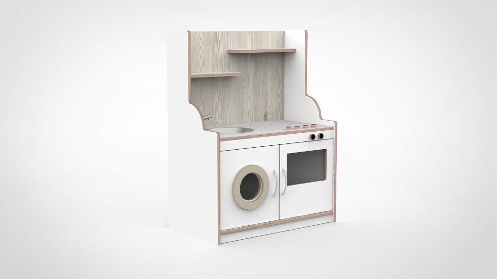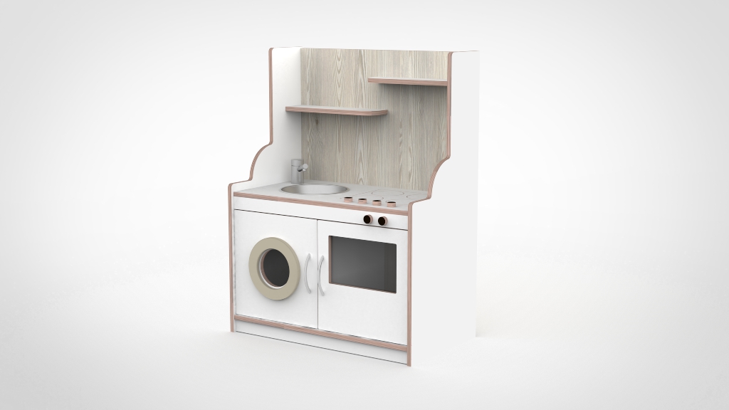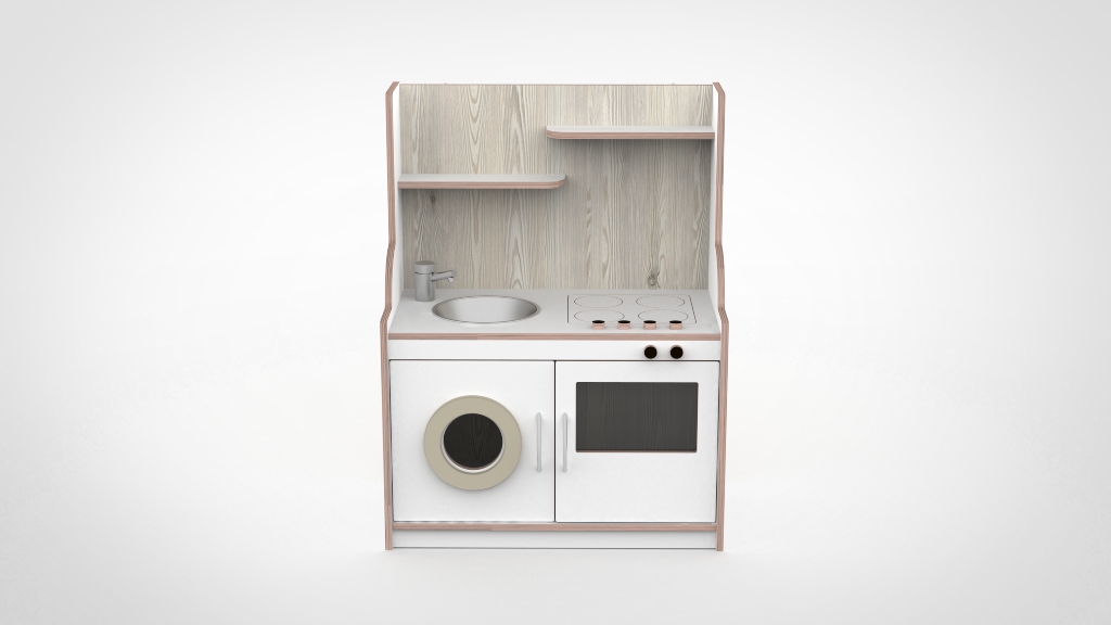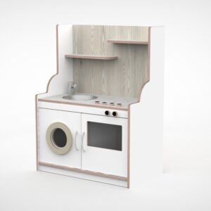 De keuken mag dan wel een slag kleiner zijn dan onze andere modellen maar bied nog steeds ruimte om meerdere kinderen tegelijkertijd er mee te laten spelen. Door het gebruik van duurzaam materiaal is deze keuken gemaakt om jarenlang mee te gaan. De keuken bestaat uit een fornuis, een gootsteen, een wasmachine en een oven.
