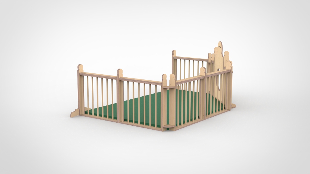 De deurtjes hebben een lage drempel en een hoge vergrendeling en is daardoor voor een volwassenen goed te bedienen. De ronde gaten zijn voorzien van plexiglas. De ondergrond van de grondbox mag gewoon de vloer zijn. De baby kan zich hiertegen het beste afzetten en hierdoor oefenen in allerlei posities, bewegen is namelijk ook leren.