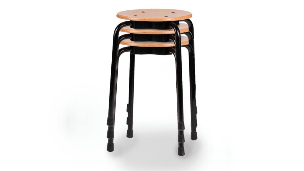 Deze tabouret budget variant heeft een blank houten zitting en is stapelbaar. De tabouret is in verschillende zithoogtes verkrijgbaar.