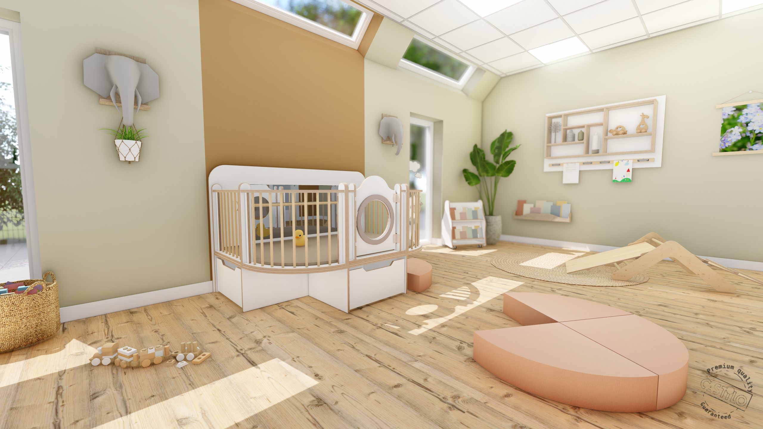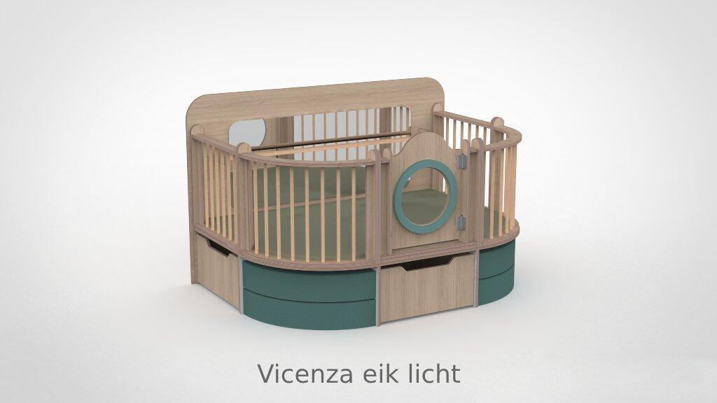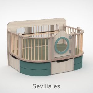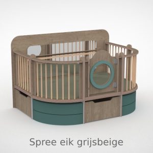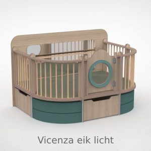 – De grondbox heeft 4 smalle kussens onder de grondbox die eruit gehaald kunnen worden zodat er mee gespeeld kan worden, afmeting is L83 x B54,5 x H15 cm en 3 rolbakken waar speelgoed opgeborgen kan worden.