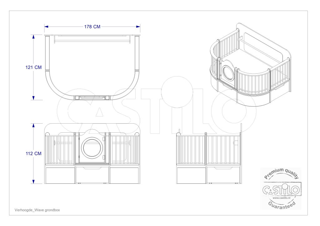 Castilo Meubelmakers / Alle producten / Meubilair / Grondboxen / Wave grondbox / Opstellingen Waveboxen / Verhoogde Grondbox Wave 4 kussens
