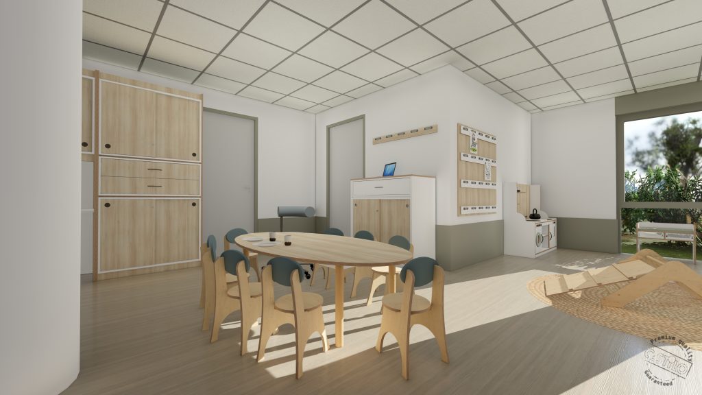 Onlangs hebben wij voor een kinderdagverblijf in Purmerend de eerste inrichting ontworpen. Het gaat hier om een groep van 3 jarige kinderen en ze wilde een nieuwe stijl in de ruimte. Het moodboard Fjord met de groen en blauwe tinten vonden ze helemaal bij hun passen. Ook hebben we de klanten een advies gegeven voor de kleuren op de muren.