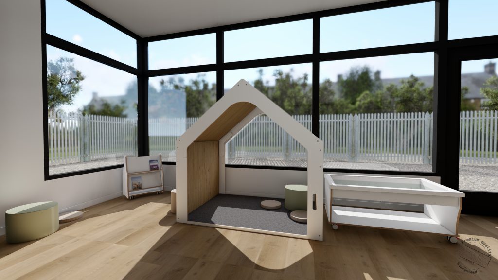 Deze ruimte is ingericht voor een MBO school die praktijkles geven voor in de kinderopvang. Hoe leuk is het dat…
